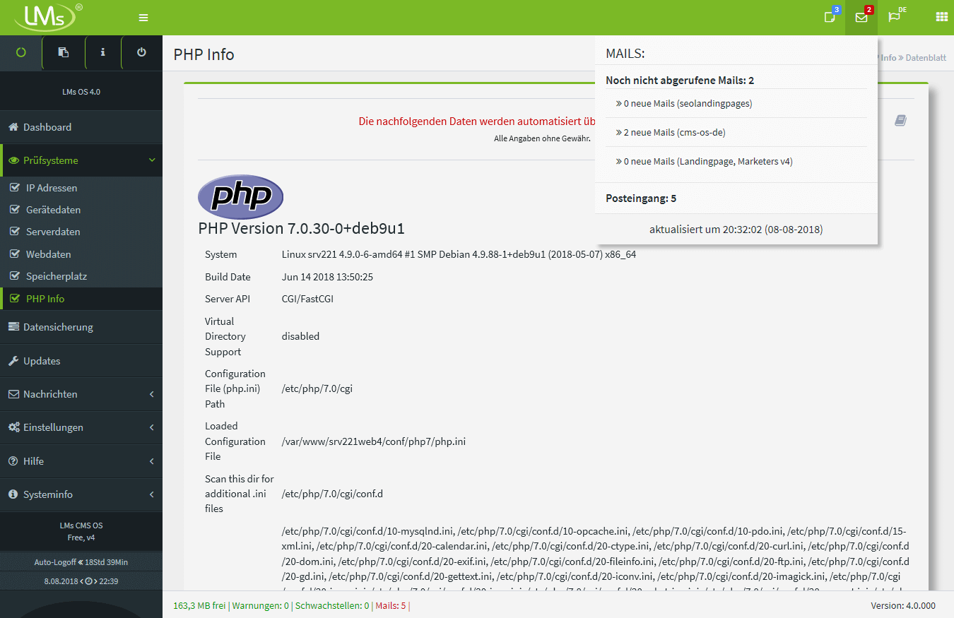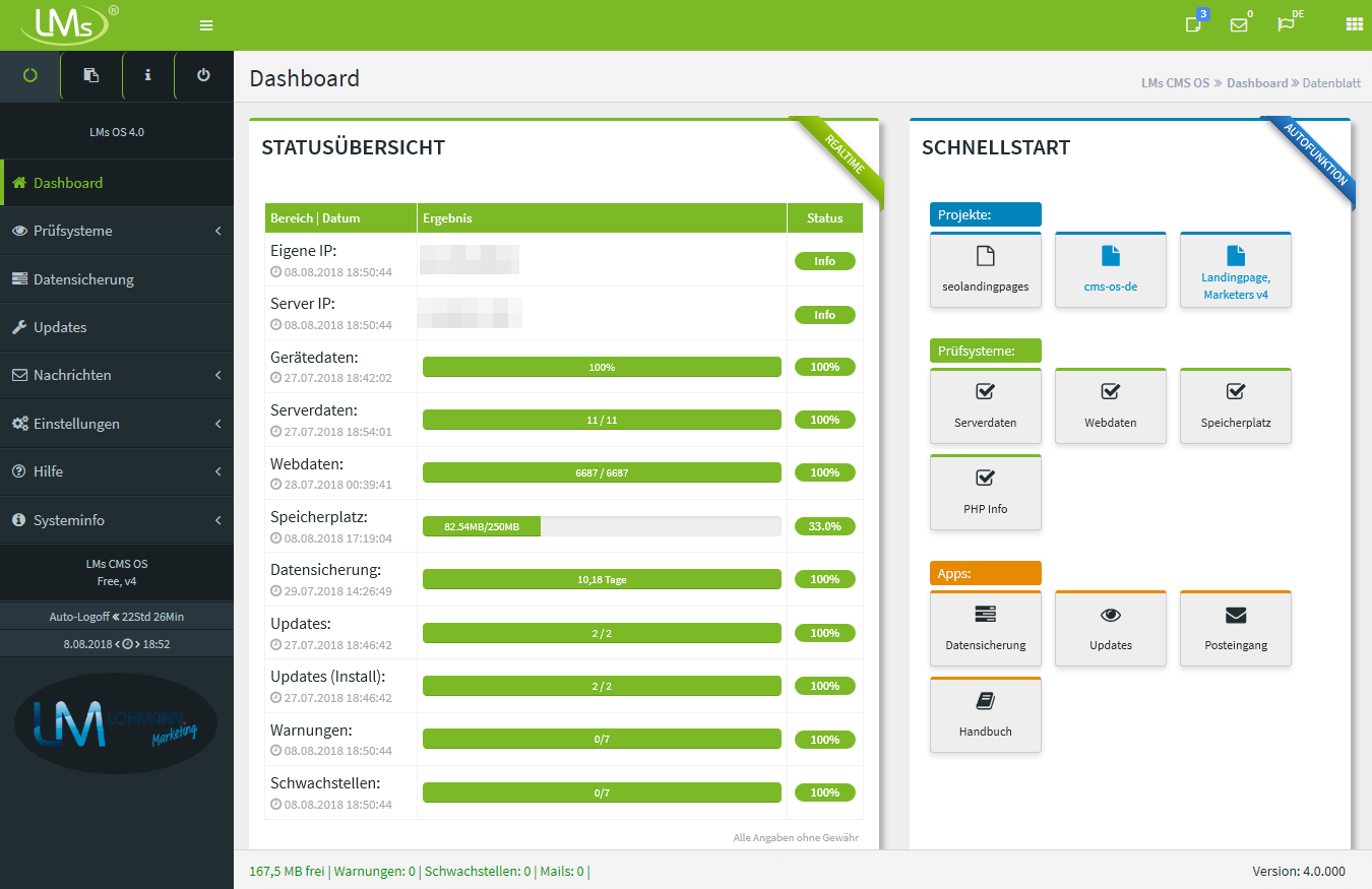 Das LMs CMS OS prüft und zeigt, was wirklich wichtig ist - KOSTENLOS!