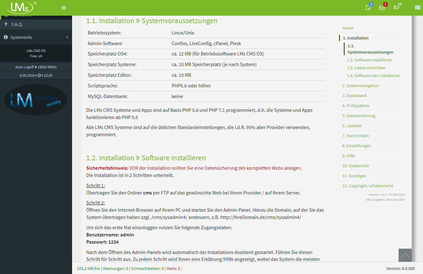 LMs CMS OS 4.0: Für Webseiten und Webaccounts, inklusive Datensicherung und integriertem Mailsystem
