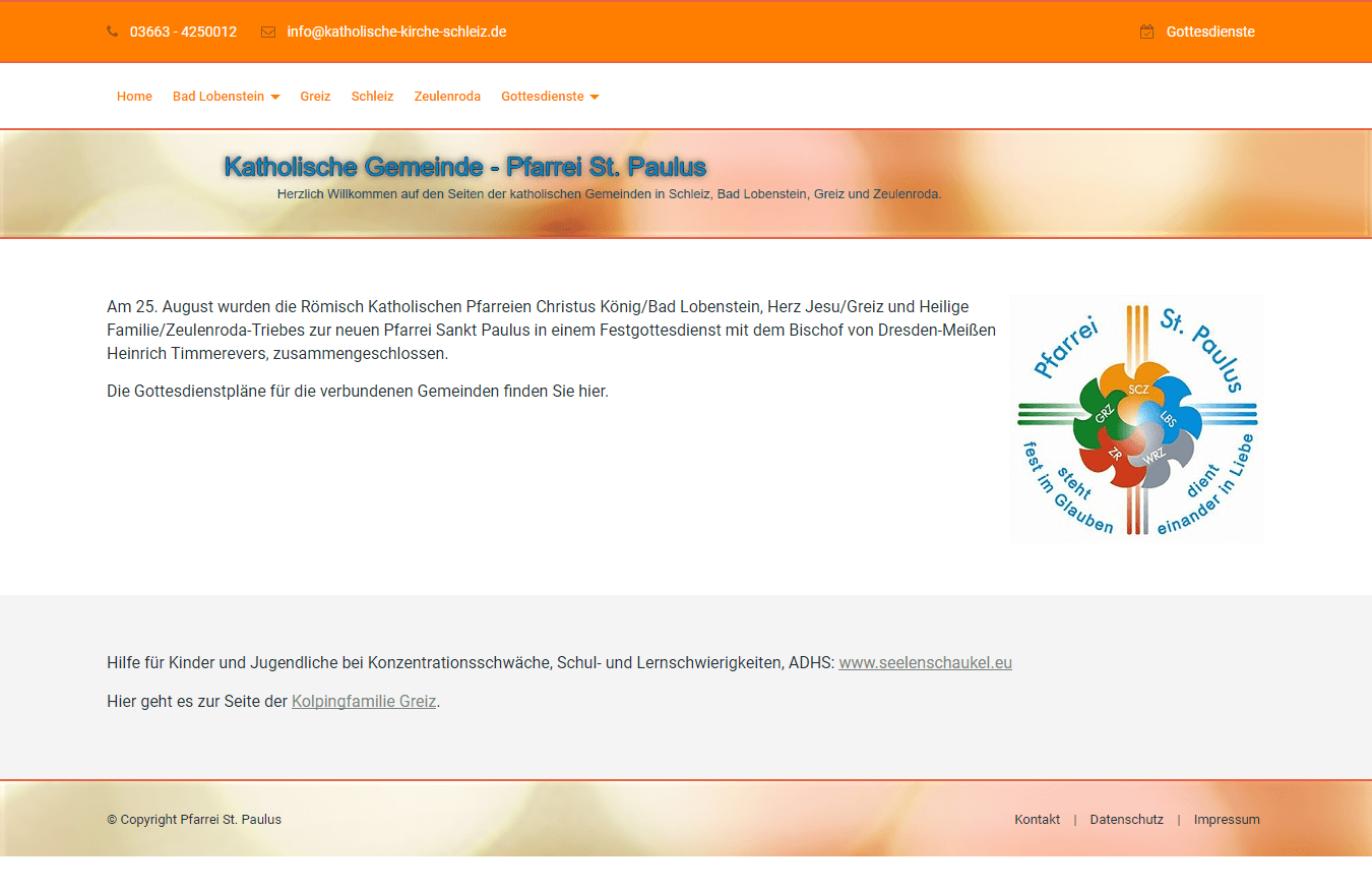 - Infobereich, Navigation und Slider im Kopfbereich (Header);